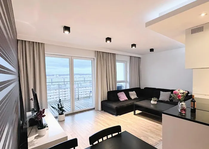 2-slaapkamer San Apartment 16Th Floor bevindt zich op circa 15-minuten rijafstand van het Centrum voor Europese Solidariteit en biedt een terras met kitchenette. Gdańsk Lech Wałęsa luchthaven ligt op 25 minuten rijden, en Przymorze Wielkie busstop ligt op een paar stappen lopen van dit appartement van 97 m^2.